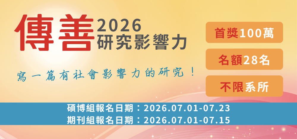 為鼓勵多元學術能量投入社會福利領域之研究,提升社福組織整體效能,陳永泰公益信託特舉辦「2026傳善研究影響力」