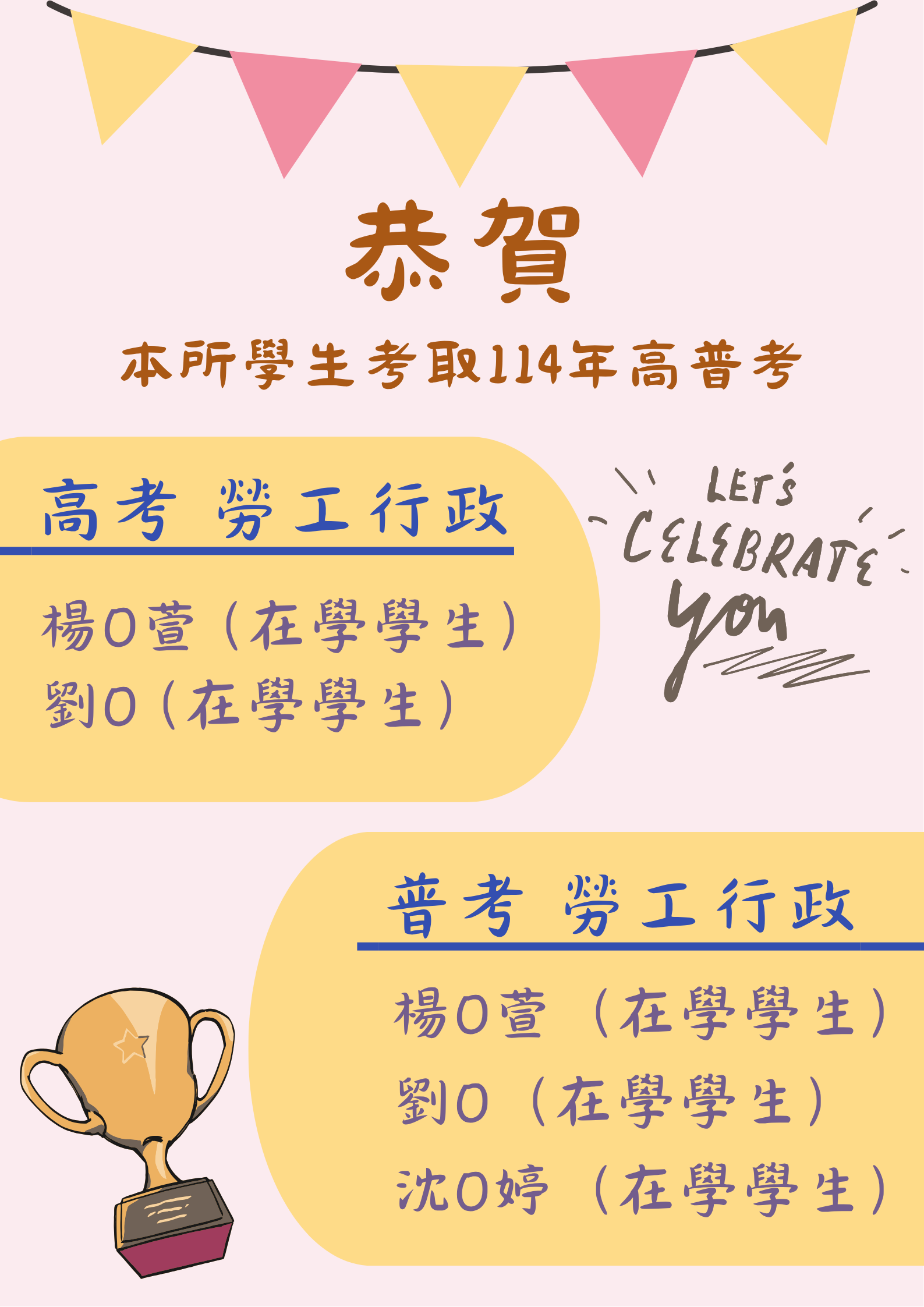 因考選部榜單將姓名去識別化,若有上榜者未被列入榜單或榜單資訊有誤,歡迎聯繫所辦修正。